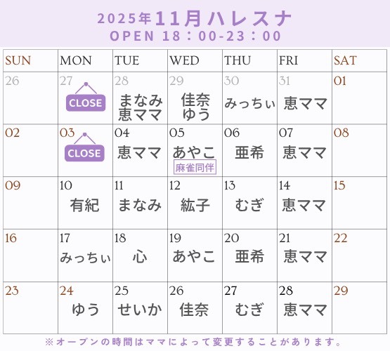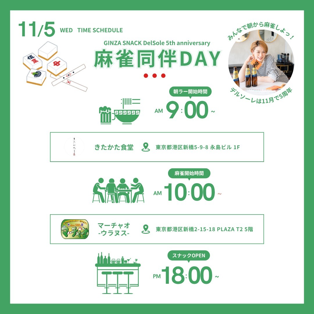 また翌日11月5日(水)は、あやこママの大人気企画、麻雀同伴day🀄️