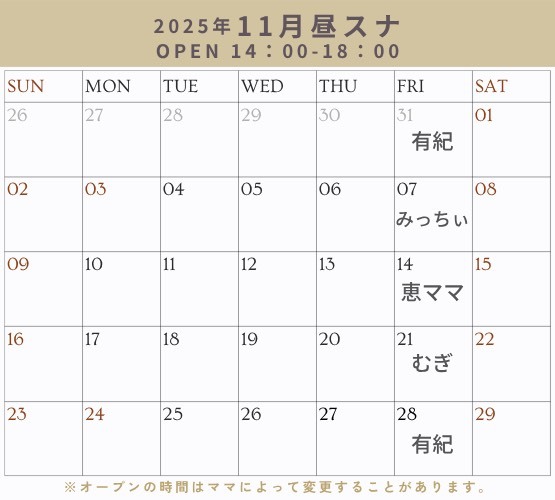 11月は以下のスケジュールで営業します!