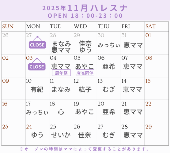 いつもデルソーレを応援してくださっている方も、最近ちょっとご無沙汰気味っていう方も、5周年monthの11月、ぜひぜひ遊びに来てくださいね✨